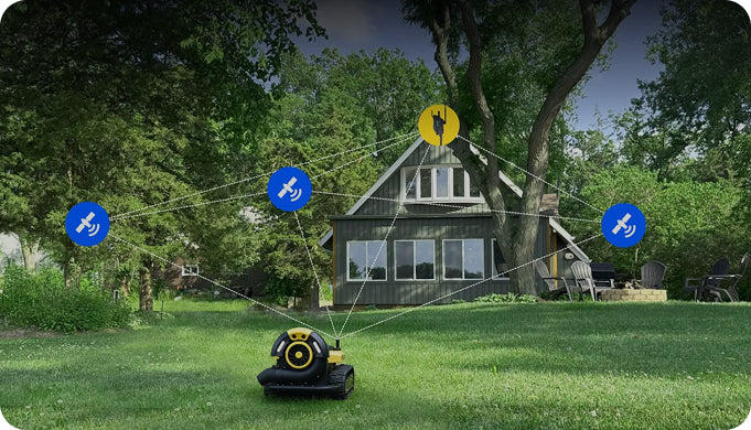 RTK-GPS, stereo vision, and ODOM technologies allow the Yarbo robotic leaf blower to navigate accurately, maintaining reliable performance even in wooded areas.
